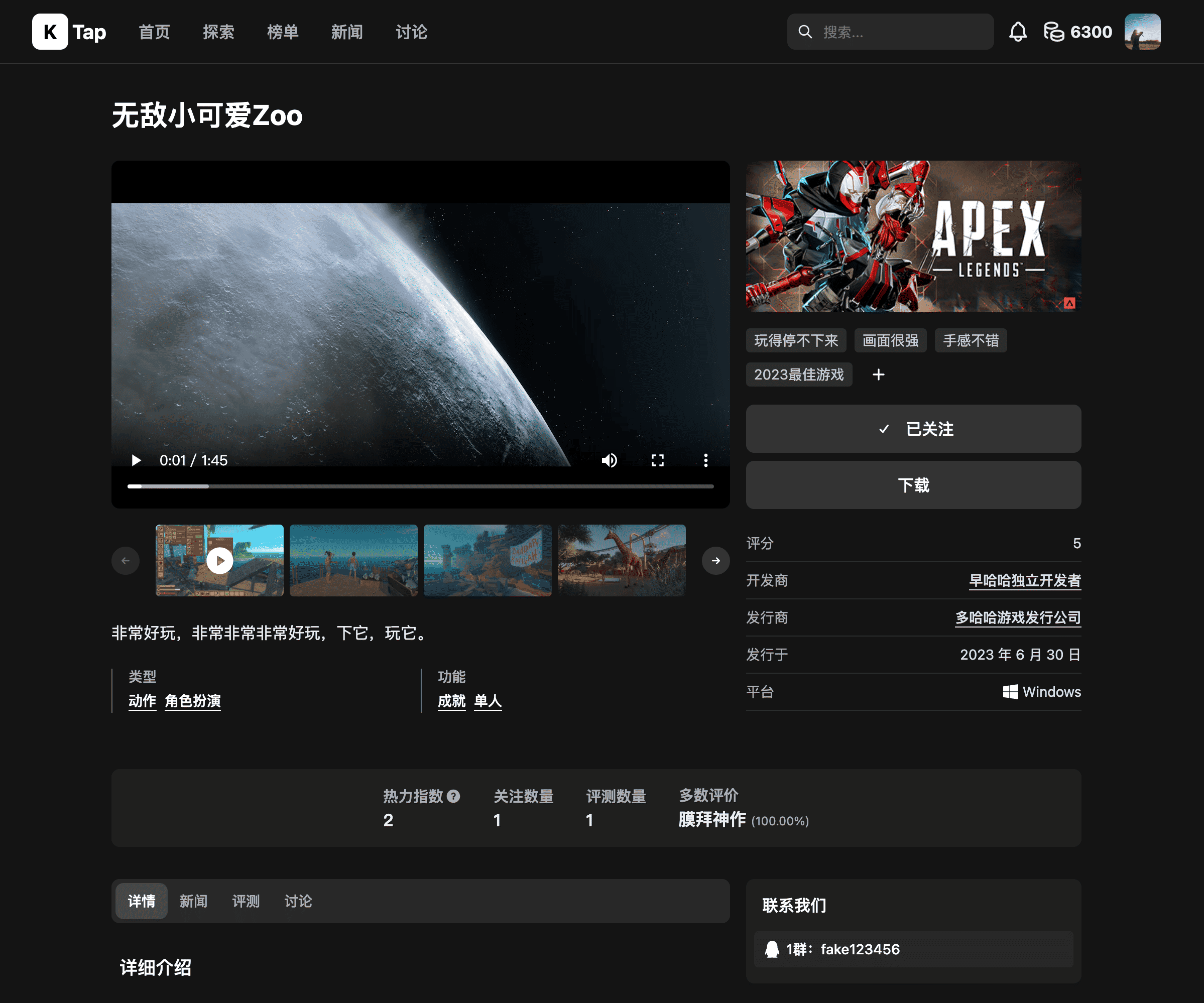 一个时尚的游戏社区平台。界面和功能都向 TapTap、Steam、Epic Games 项目致敬 🫡 。当然,未来还会有很多新的功能。