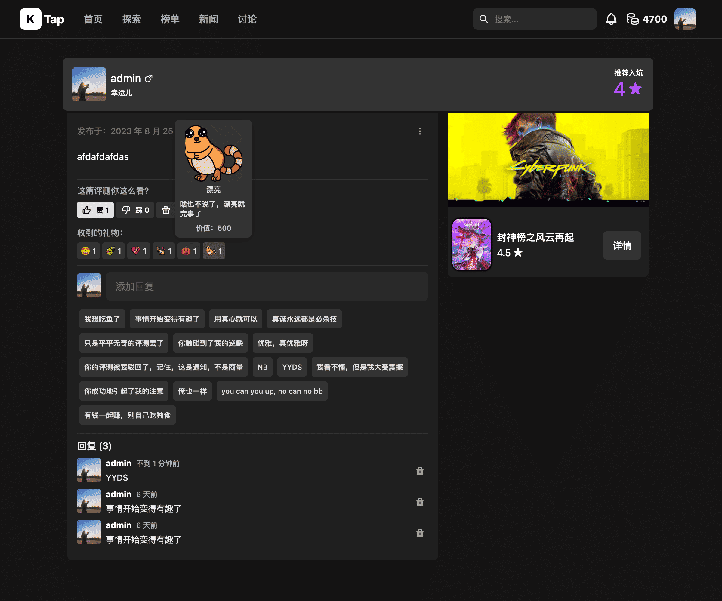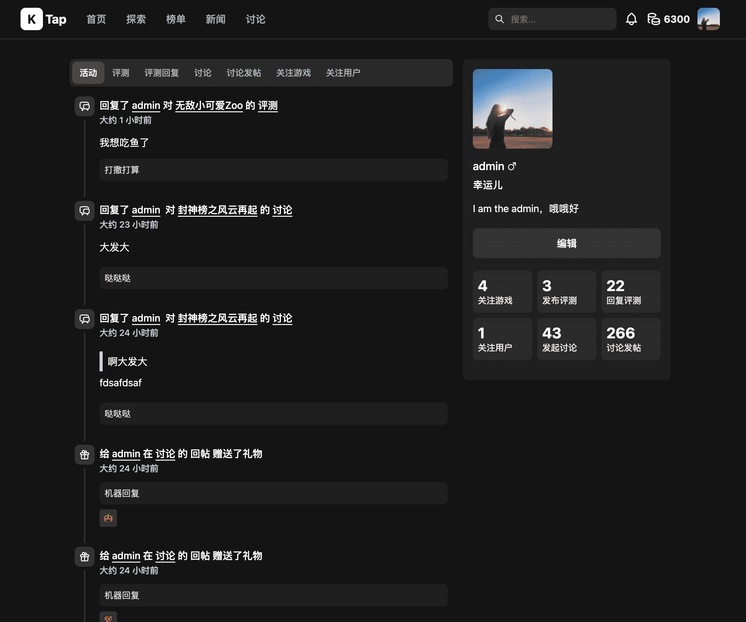 - 运营后台管理:用户、游戏、评测、讨论、标签……